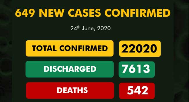 Nigeria has recorded 649 new COVID-19 cases in the country as total infections from the virus rose to 22, 020.