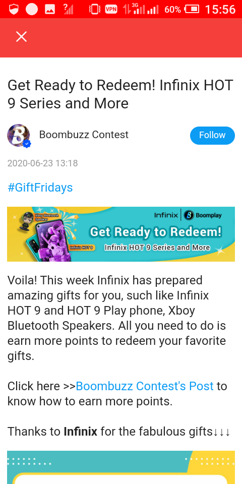 Last week people got to redeem different items on Boomplay involving products from Itel, this time around Infinix will be the reedemable product.