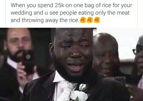 That hilarious moment when you borrow money to marry your wife but you later realised that she can't cook ordinary jollof. You will just be like: