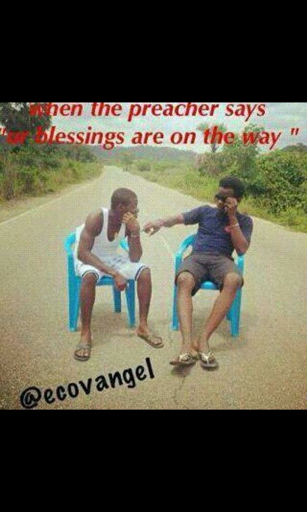 That awkward moment when you sit in the middle of the road just because a preacher says "Your blessings are on the way"