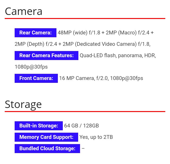 The phone comes with a better camera and its a lot of improvement. Its quad-camera system is home to a 48MP primary camera, a 2MP macro camera, a 2MP depth camera and another 2MP camera, which is a dedicated video camera.