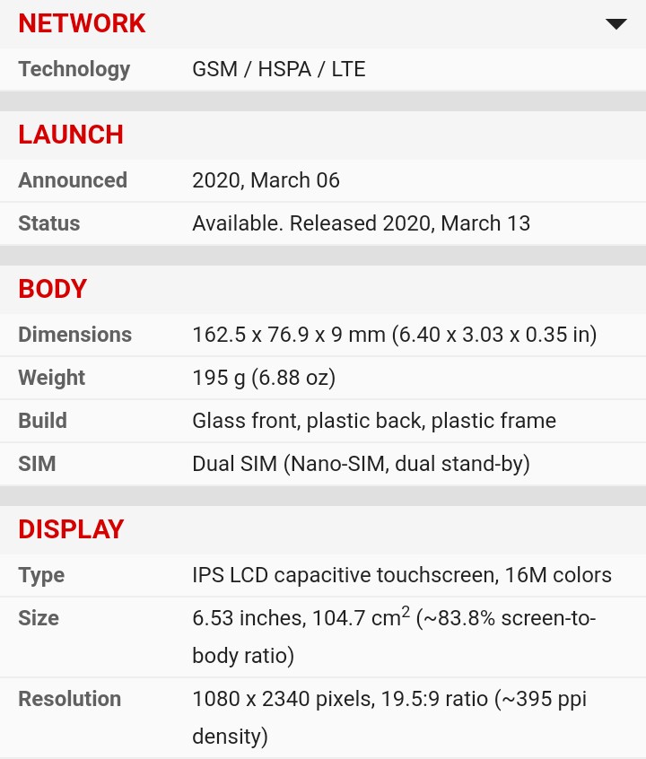 You got a 6.95 inch IPS LCD display with a hole punch camera cut-out. The display had a screen resolution of 720 x 1640 and a pixel density of 258 ppi.