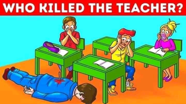 Well let start by stating the character above, the picture above illustrate a scenery where there is a murder case in a classroom, there are three suspect , but only one one of them committed the crime.