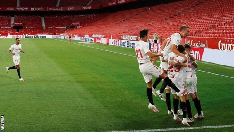 After a minute's silence was held in honour of those have lost their lives to the corona virus, Sevilla and Real Betis got the ball rolling again, with Sevilla running out 2-0 winners. The hosts opened the scoring as Ocampos beat Betis' goalkeeper from the penalty spot, having also hit the cross bar with a shot in the first half.