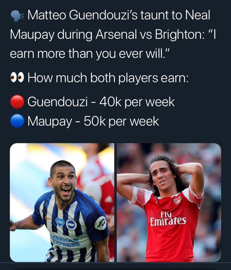 The Frenchman currently earns less than £40,000 per week at the Emirates and was recently involved in a confrontation with Brighton player Neal Maupay.